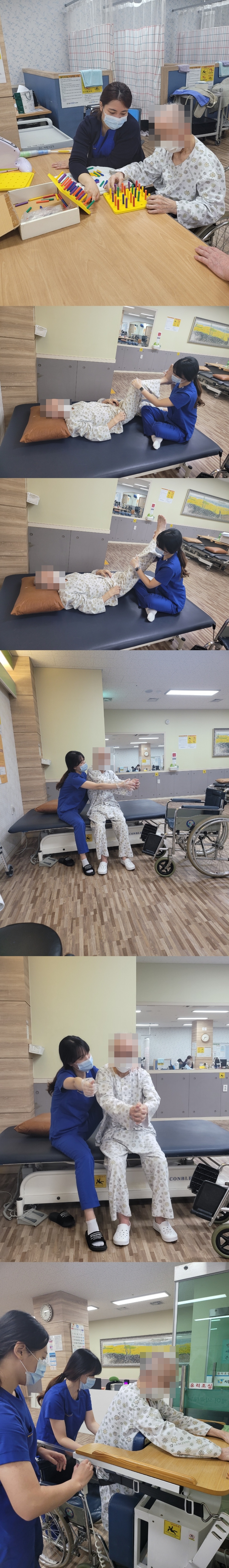 위 사진은 치료실에 내려와서 다양한 치료를 받으시는 어르신 모습인데요~