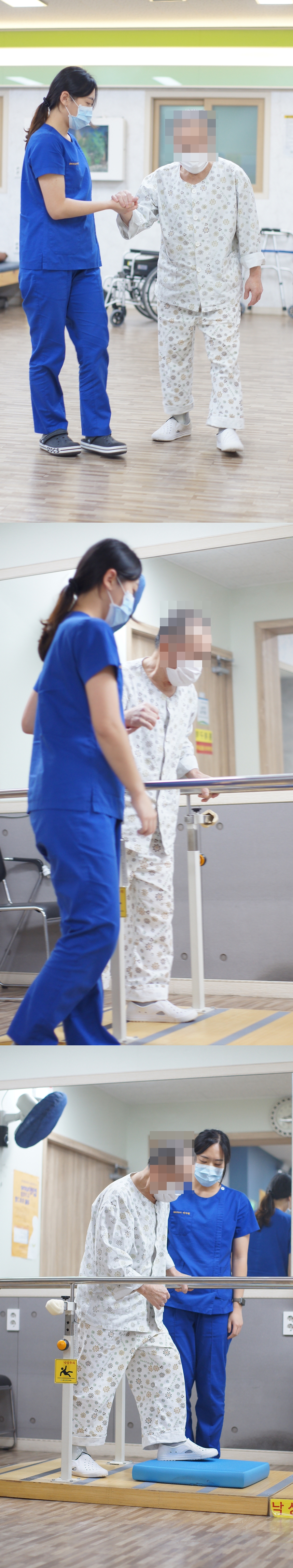 위 사진은 선생님과 단계별로 치료하는 어르신의 모습입니다.