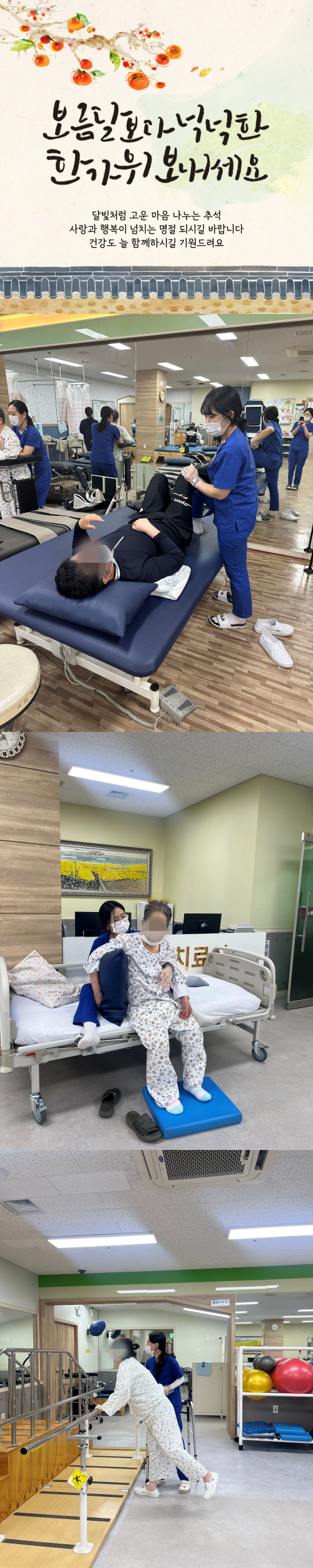 다가오는 명절이 환자분들과 보호자분들께 건강과 행복을 되찾는 계기가 되기를 바랍니다.
