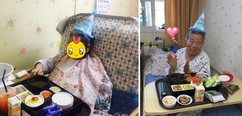 정성으로 준비한 생신상을 받으신 우리 환우분들 얼굴에 웃음꽃이 활짝피어