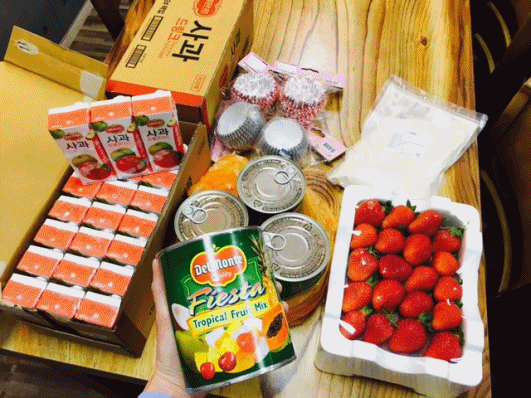 일단 재료는 '젤라틴, 한천, 과일주스, 과일통조림, 생과일, 식용꽃' 이 있구요