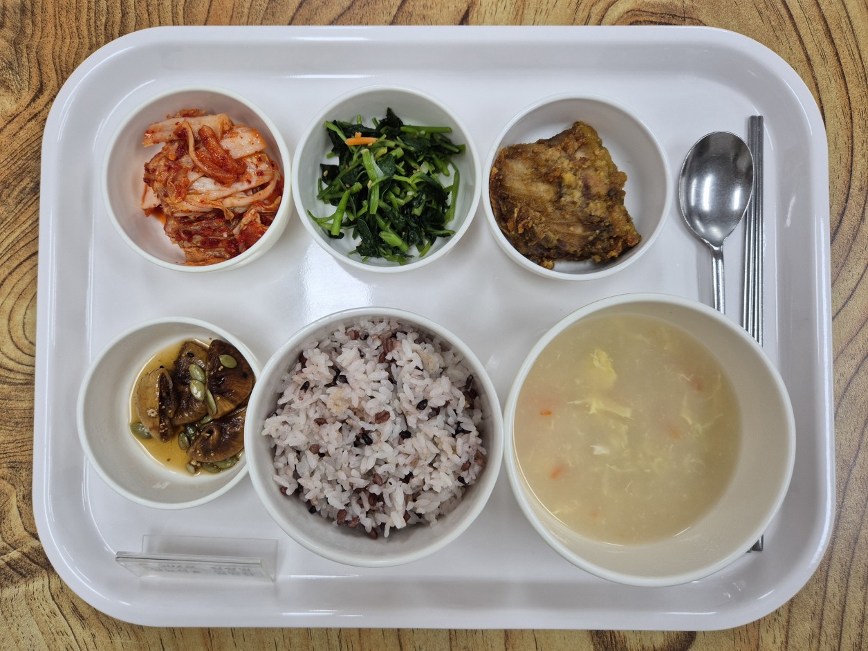 ▷3월 18일 중식 : 백미밥(죽/잡곡밥) / 떡국 / 고등어카레구이 / 무화과견과류조림 / 참나물무침 / 김치◁