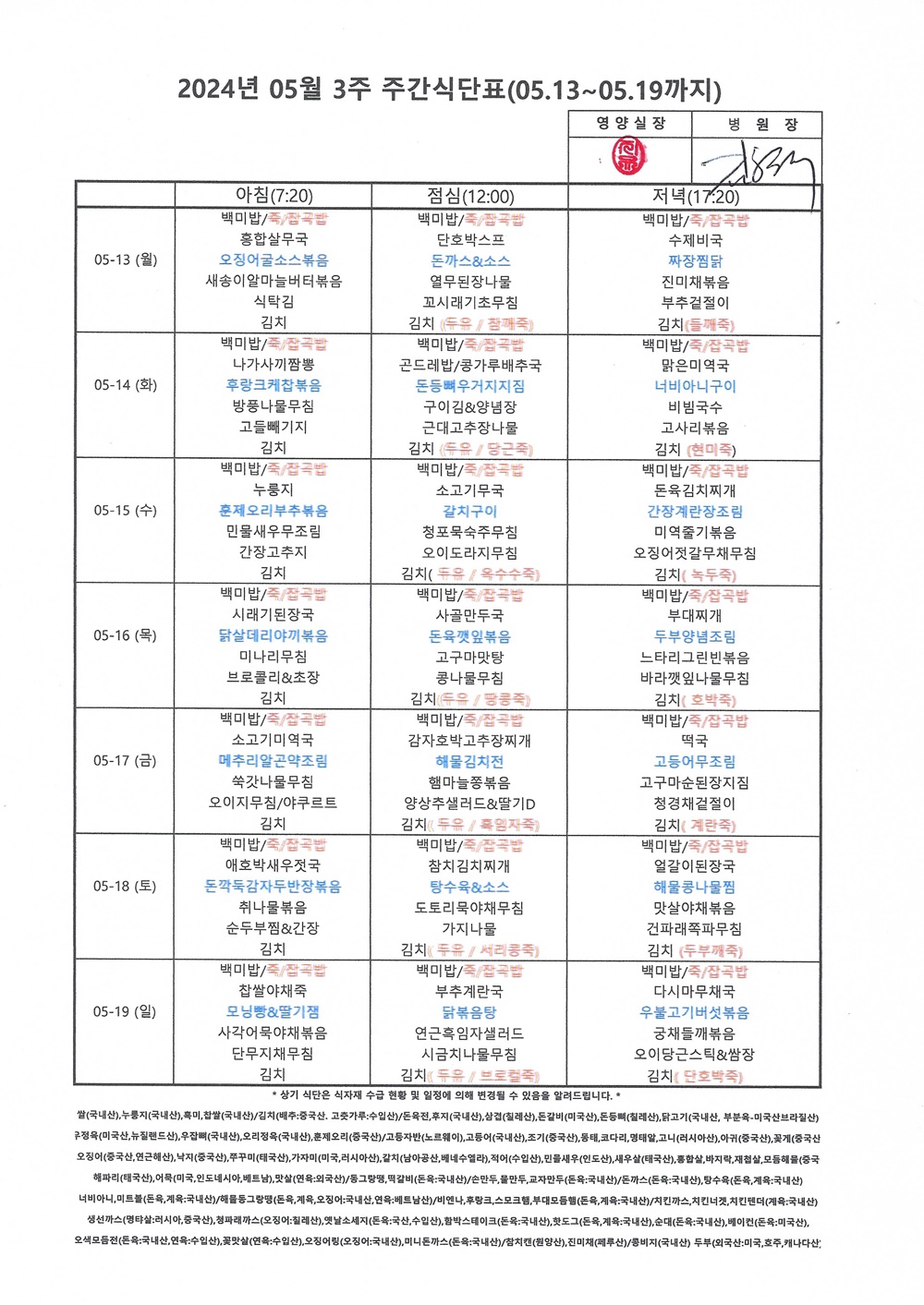 2024년 5월 3째주 주간식단표