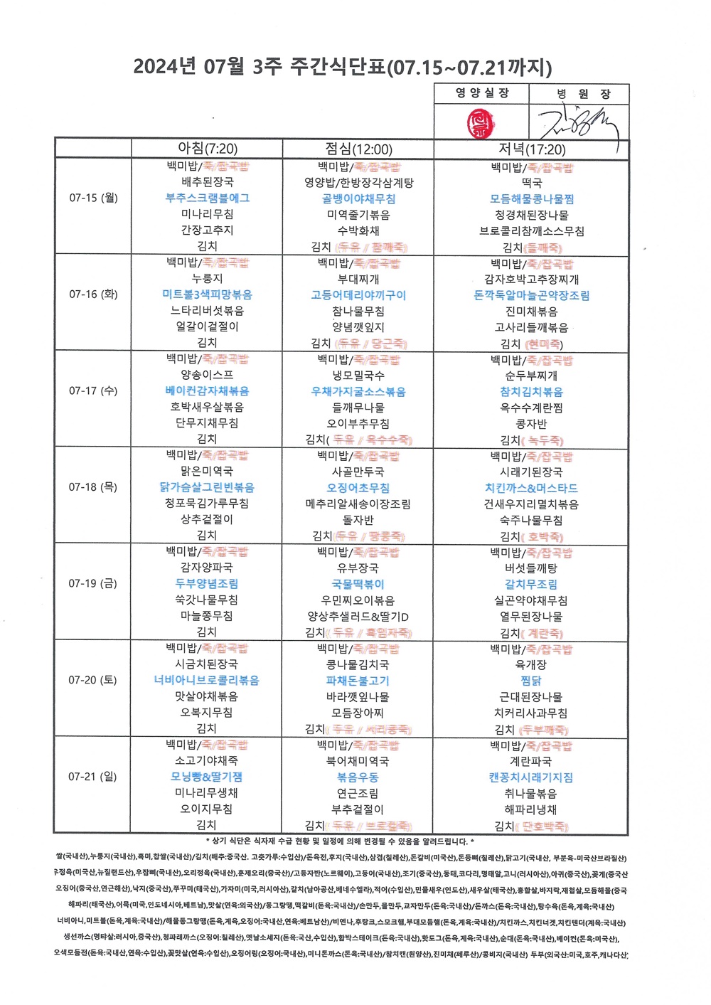 2024년 7월 3째주 주간식단표