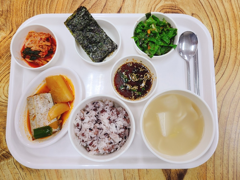 06월 30일 중식은 <백미밥(죽/잡곡밥) / 수제비국 / 갈치무조림 / 구이김&양념장 / 모듬겉절이 / 김치 > 였습니다.