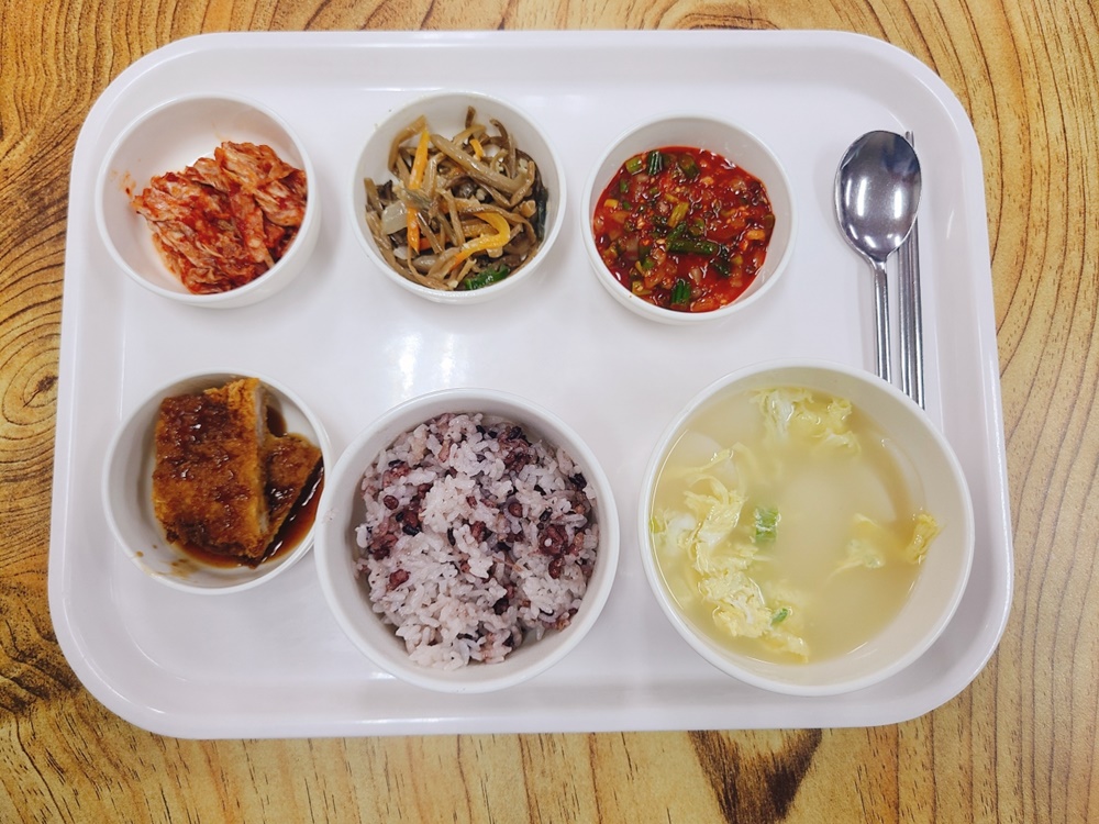 07월 03일 중식은 <백미밥(죽/잡곡밥) / 떡국 / 돈까스&소스 / 고구마순된장지짐 / 오징어젓갈무침 / 김치 > 였습니다.