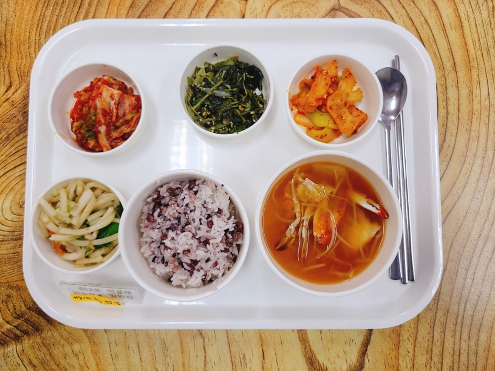 07월 14일 중식은 <백미밥(죽/잡곡밥) / 꽃게탕 / 볶음우동 / 건취나물볶음 / 노각무침 / 김치 > 였습니다.