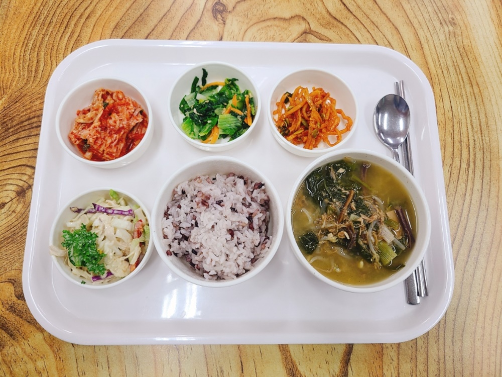 06월 22일 중식은 <백미밥(죽/잡곡밥) / 참치추어탕 / 닭가슴살참깨샐러드 / 진미채볶음 / 얼갈이된장나물 / 김치 > 였습니다.