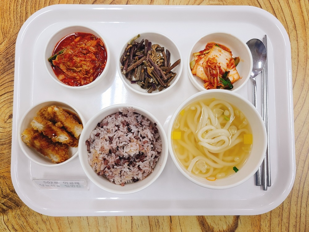 05월 11일 중식은 < 백미밥(죽/잡곡밥) / 미니우동국 / 돈까스&소스 / 알배추청경채겉절이 / 고사리볶음 / 김치 > 였습니다.