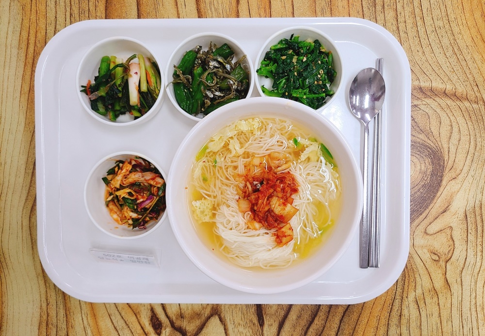04월 14일 중식은 < 백미밥(죽/잡곡밥) / 잔치국수 / 오징어초무침 / 꽈리고추멸치볶음 / 열무된장무침/ 김치 > 였습니다.