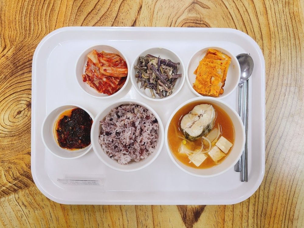 04월 05일 중식은 < 백미밥(죽/잡곡밥) / 동태찌개 / 김치전 / 고사리들깨볶음 / 양념깻잎지 / 김치 > 였습니다.