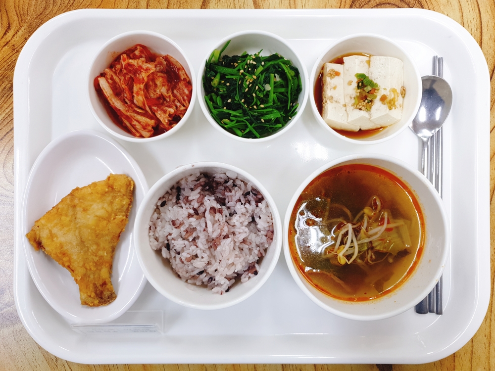 01월 26일 중식은 < 백미밥(죽/잡곡밥) / 육개장 / 가자미구이 / 참나물무침 / 온두부&간장 / 김치 > 였습니다.
