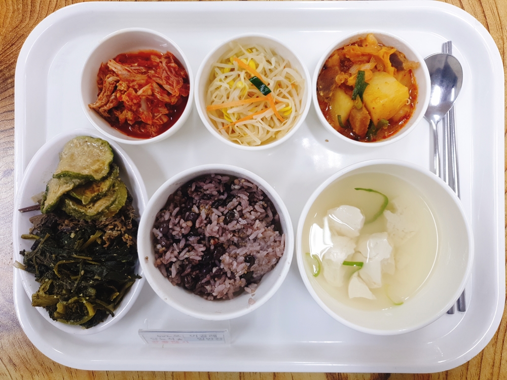 02월 06일 중식은 < 백미밥(죽/잡곡밥) / 맑은순두부국 / 돈육짜글이 / 호박오가리,건고사리,시래기 / 건취나물,콩나물 / 김치 > 였습니다.