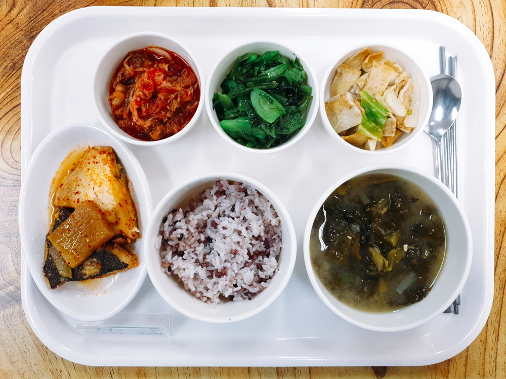01월 03일 중식은 < 백미밥(죽/잡곡밥) / 시래기된장국 / 가자미무조림 / 사각어묵양파볶음 / 해초들기름볶음 / 김치 > 였습니다.