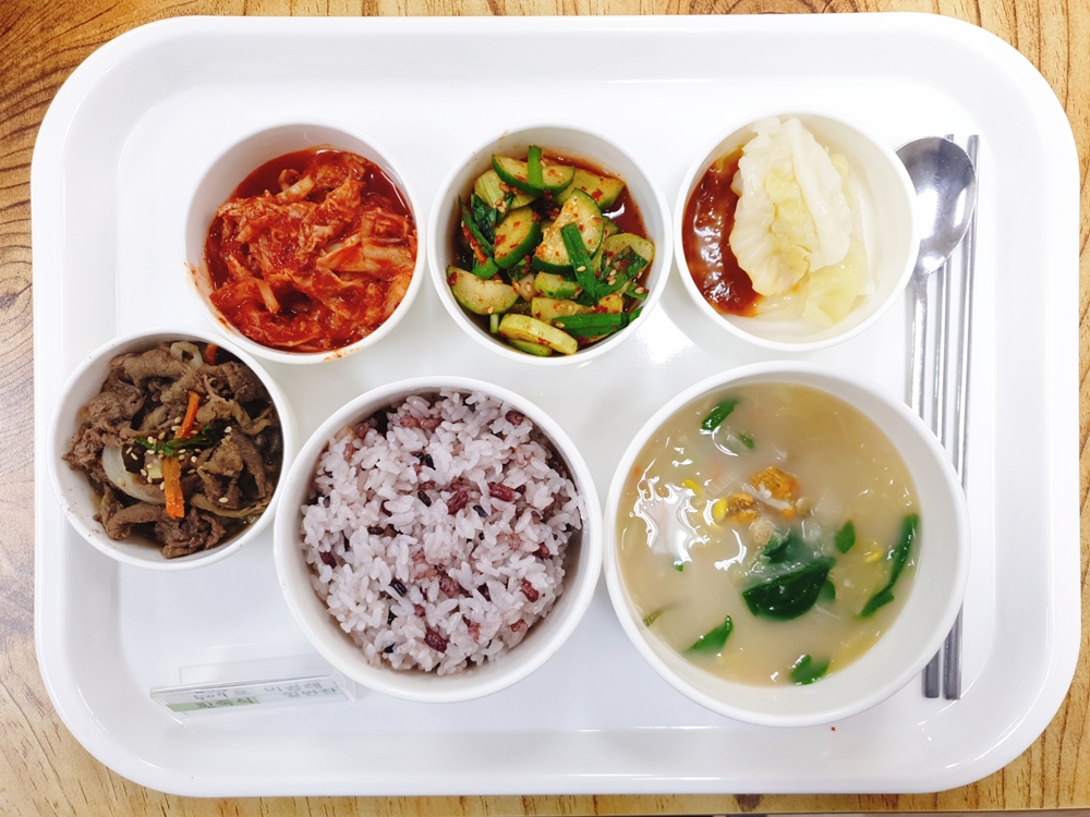12월 22일 중식은 < 백미밥(죽/잡곡밥) / 나가사끼짬뽕국 / 우불고기 / 양배추쌈&쌈장 / 오이송송이부추겉절이 / 김치 > 였습니다.