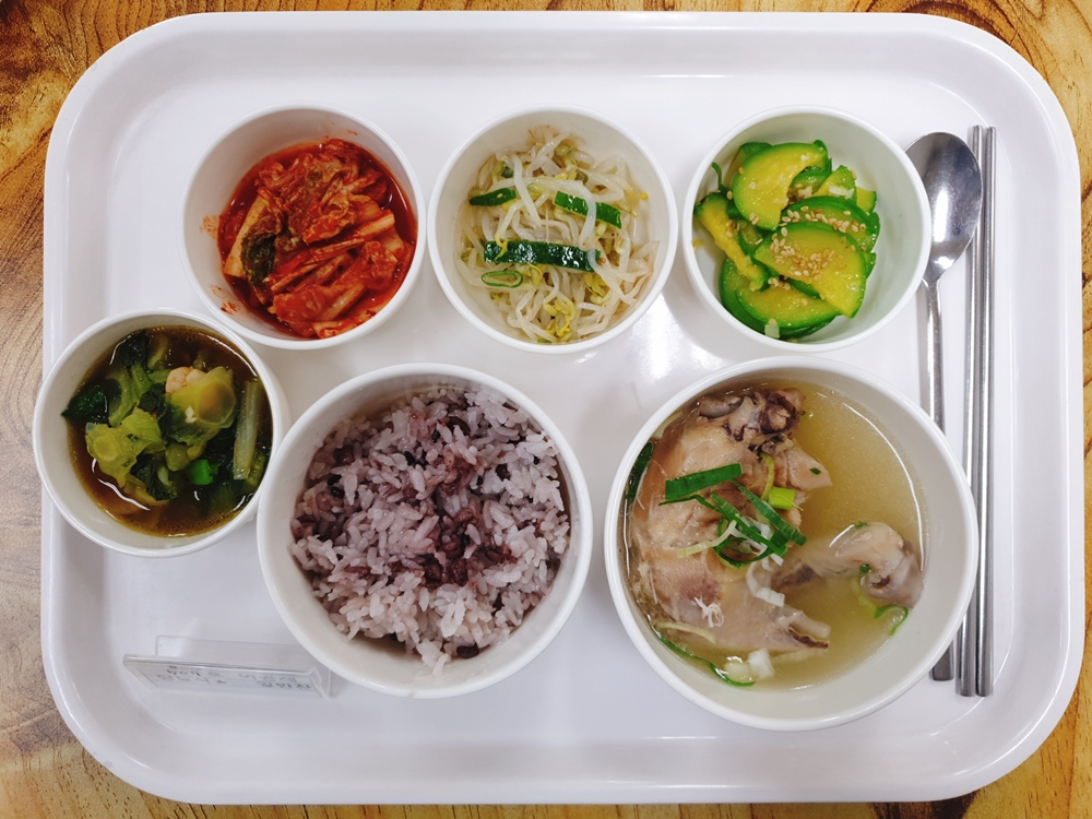 11월 04일 중식은 < 백미밥(죽/잡곡밥) / 한방장각탕 / 애호박돈민찌볶음 / 숙주나물무침 / 홍새우살야채굴소스볶음 / 김치 > 였습니다.