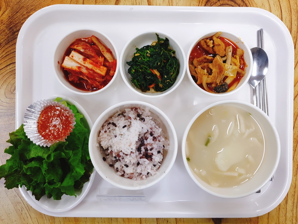 09월 20일 중식은 < 백미밥(죽/잡곡밥) / 감자수제비국 / 돈불고기 / 상추쌈&쌈장 / 비름나물무침 / 김치 > 였습니다.