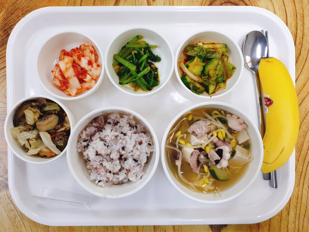 09월 14일 중식은 < 백미밥(죽/잡곡밥) / 연포탕 / 우불고기야채볶음 / 상추겉절이 / 열무된장무침 / 김치 > 였습니다.