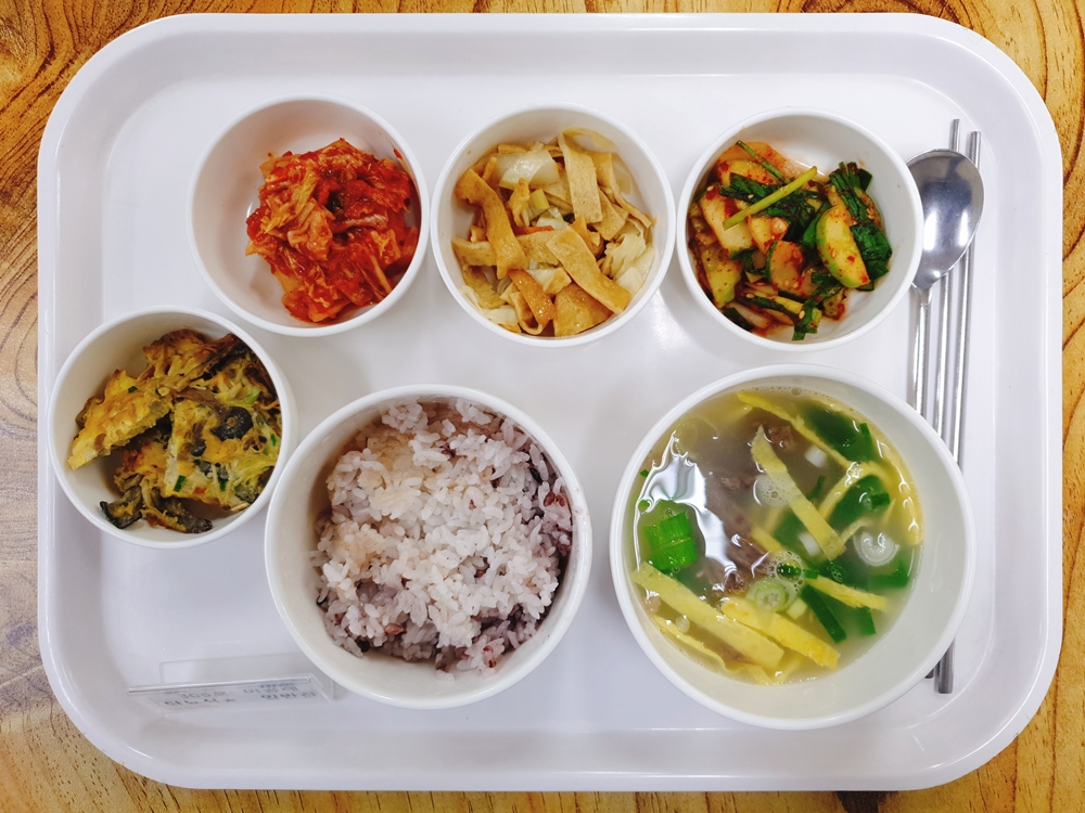 7월 26일 중식은 < 백미밥(죽/잡곡밥) / 설렁탕 / 느타리버섯전 / 어묵볶음 / 오이무침 / 김치 > 였습니다.