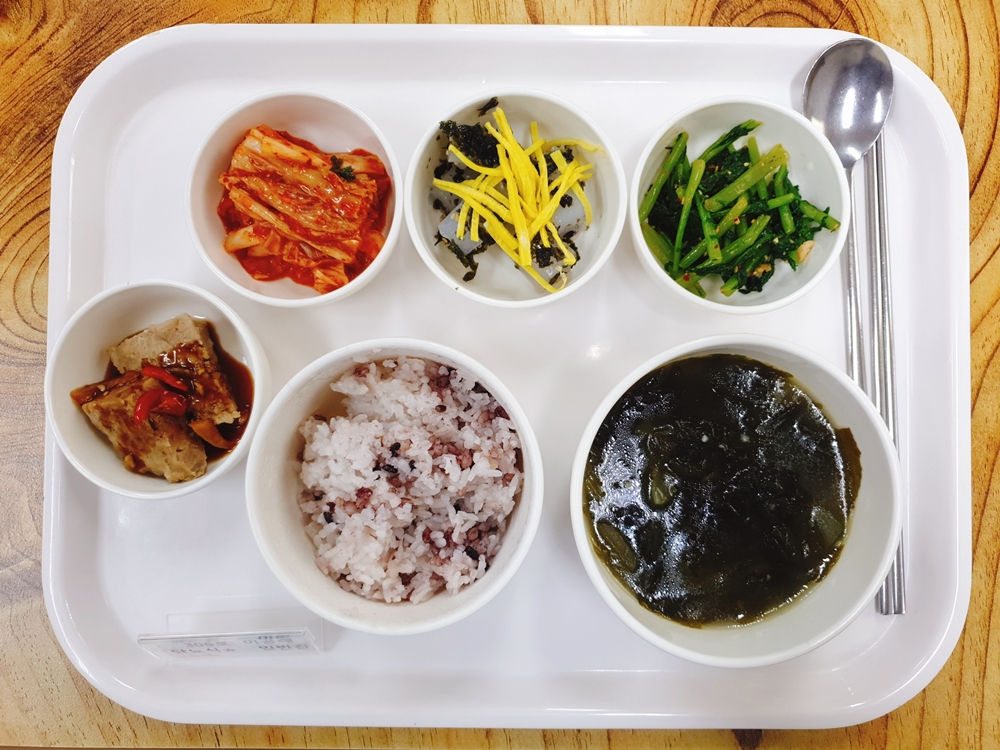 7월 29일 중식은 < 백미밥(죽/잡곡밥) / 미역국 / 함박스테이크&소스 / 청포묵김가루무침 / 열무된장무침 / 김치 > 였습니다.