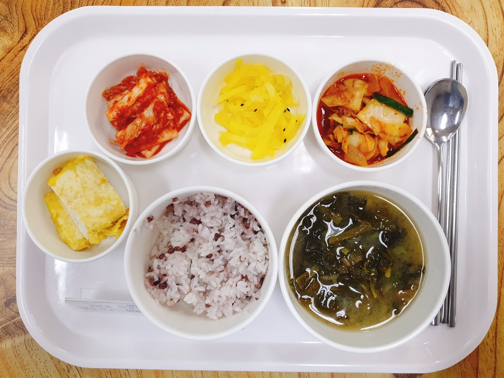 5월 26일 중식은 < 백미밥(죽/잡곡밥) / 시래기된장국 / 오징어야채볶음 / 계란두부구이 / 단무지채흑임자무침 / 김치 > 였습니다.