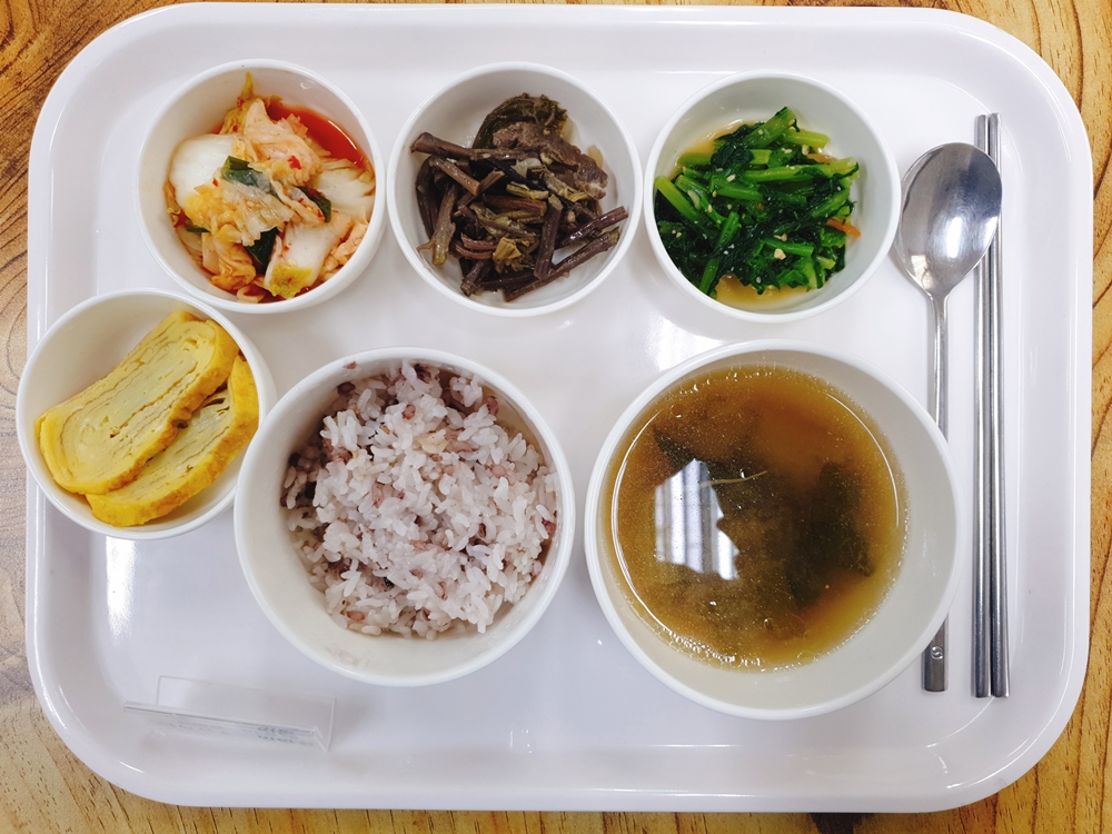 6월 7일 중식은 < 백미밥(죽/잡곡밥) / 소고기해장국 / 계란말이 / 고사리우채볶음 / 열무나물된장무침 / 김치 > 였습니다.