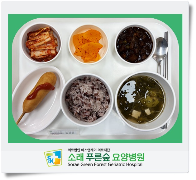 ▷ 1월 5일 중식 : 백미밥(죽/잡곡밥) / 냉이된장국 / 짜장소스 / 핫도그&케찹 / 단무지무침 / 김치 ◁