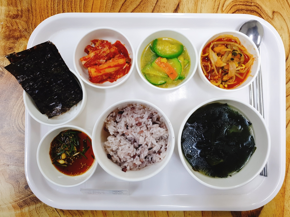5월 10일 중식은 < 백미밥(죽/잡곡밥) / 미역국 / 해물찜 / 호박나물볶음 / 곱창김&달래장 / 김치 > 였습니다.