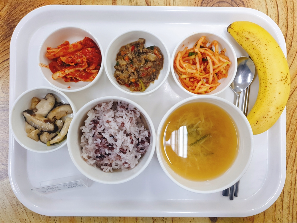 5월 2일 중식은 < 백미밥(죽/잡곡밥) / 팽이미소된장국 / 불고기덮밥 / 표고버섯미니송이굴소스볶음 / 무생채 / 바나나 / 김치 > 였습니다.