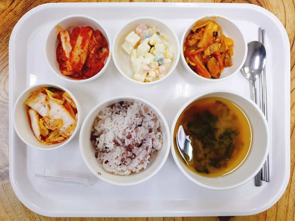 3월 28일 중식은 < 백미밥(죽/잡곡밥) / 근대된장국 / 해물콩나물찜 / 감자샐러드 / 봄돔겉절이 / 김치 > 였습니다.