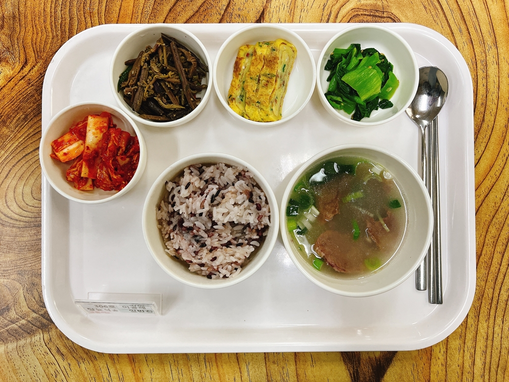 2월 16일 중식은 < 백미밥(죽/잡곡밥) / 설렁탕 / 계란말이 / 청경채나물무침 / 고사리우채볶음 / 김치 > 였습니다.