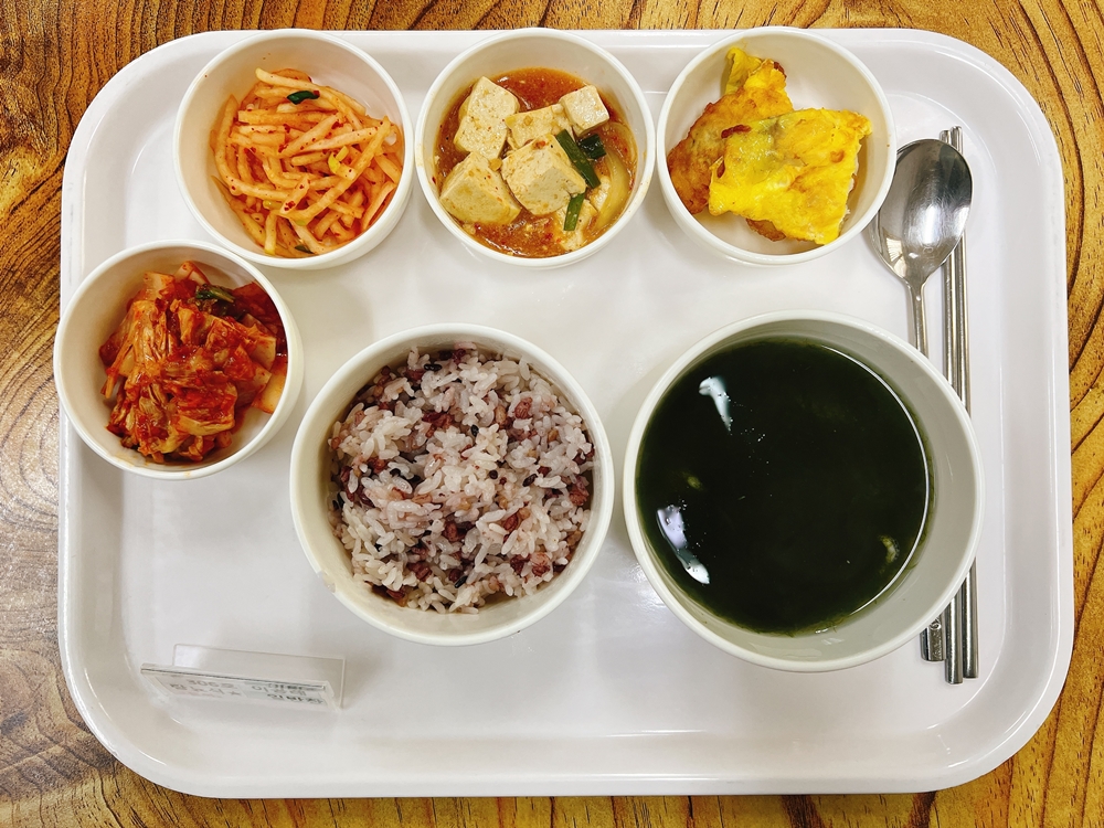 1월 25일 중식은 < 백미밥(죽/잡곡밥) / 매생이굴국 / 동태포전 / 마파두부 / 무생채 / 김치 > 였습니다.