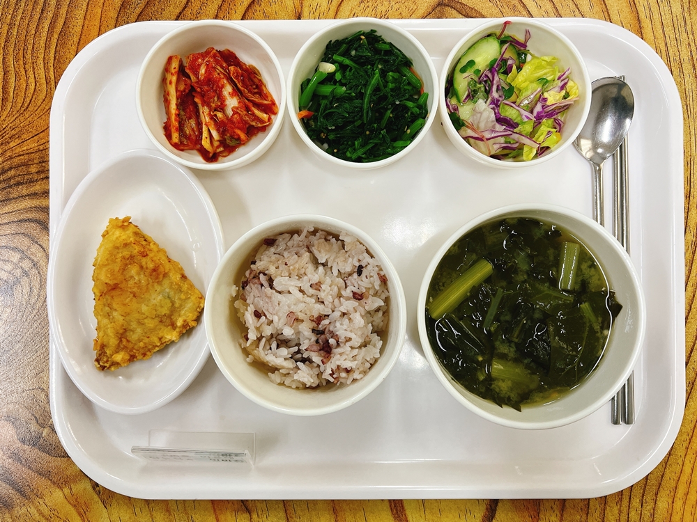 12월 28일 중식은 < 백미밥(죽/잡곡밥) / 근대된장국 / 가자미구이 / 양상추야채샐러드 / 쑥갓나물무침 / 김치 > 였습니다.