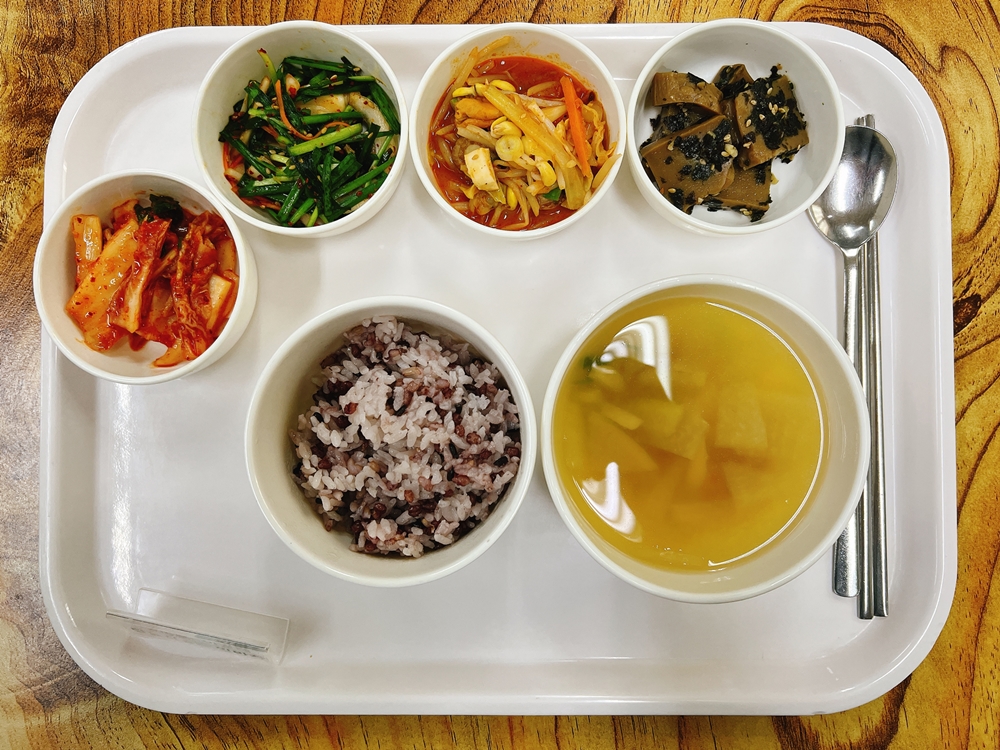 1월 5일 중식은 < 백미밥(죽/잡곡밥) / 무삐짐된장국 / 해물찜 / 도토리묵김가루무침 / 부추양파무침 / 김치 > 였습니다.