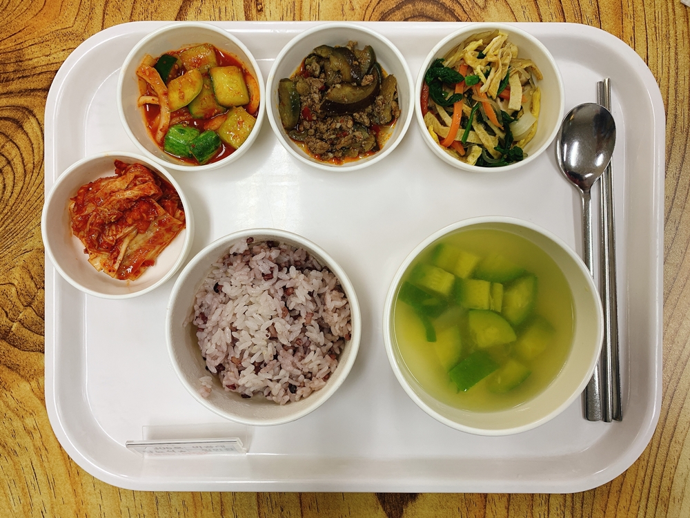 11월 16일 중식은 < 백미밥(죽/잡곡밥) / 애호박새우젓맑은국 / 돈민찌가지볶음 / 잡채 / 오이양파고추장무침 / 김치 > 였습니다.