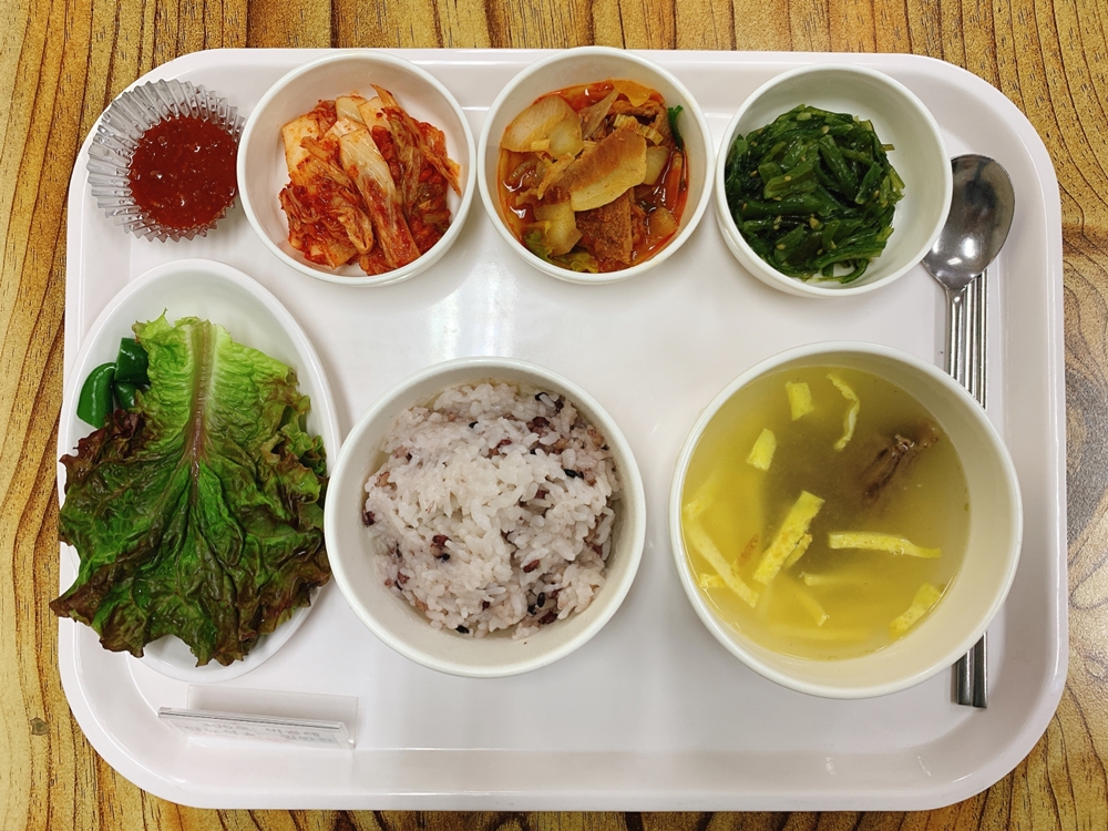 10월 27일 중식은 < 백미밥(죽/잡곡밥) / 설렁탕 / 돈불고기 / 상추,풋고추쌈&쌈장 / 미역줄거리볶음 / 김치 > 였습니다.