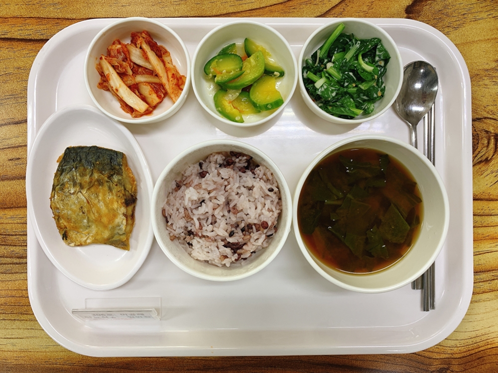 10월 28일 중식은 < 백미밥(죽/잡곡밥) / 근대된장국 / 삼치구이 / 비타민들깨소스무침 / 애호박새우젓볶음 / 김치 > 였습니다.