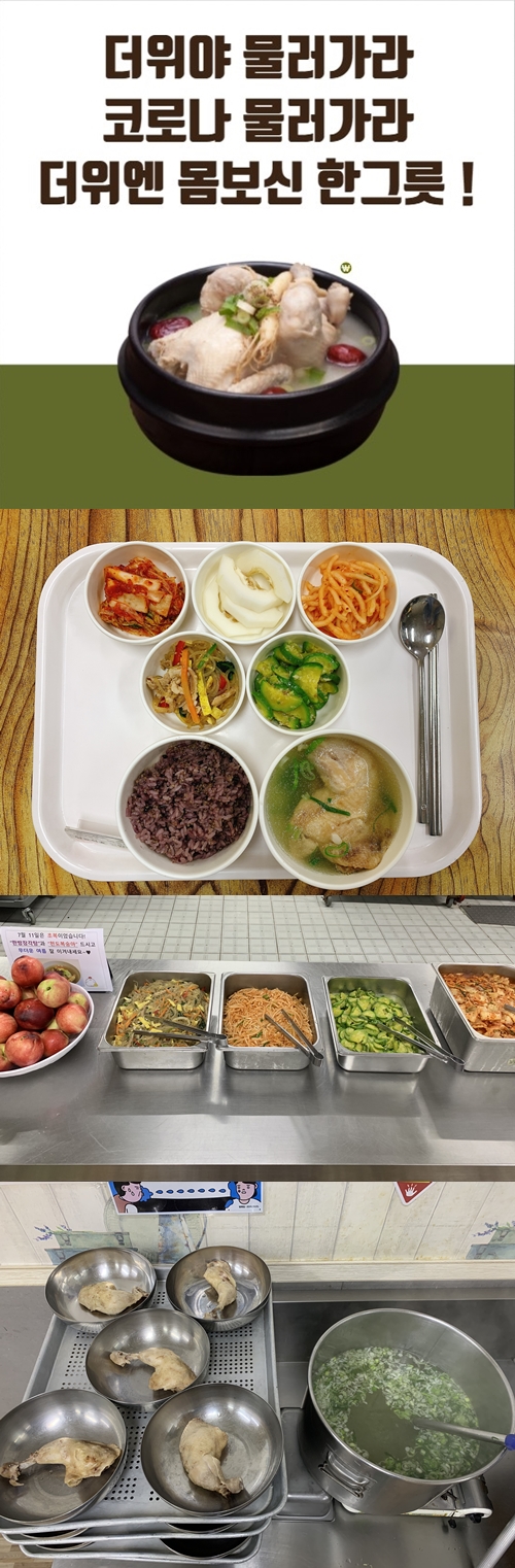 그래서 올해도 어김없이 영양실에서는 초복을 맞이하여 영양만점 든든한 점심식사를 준비하였습니다.
