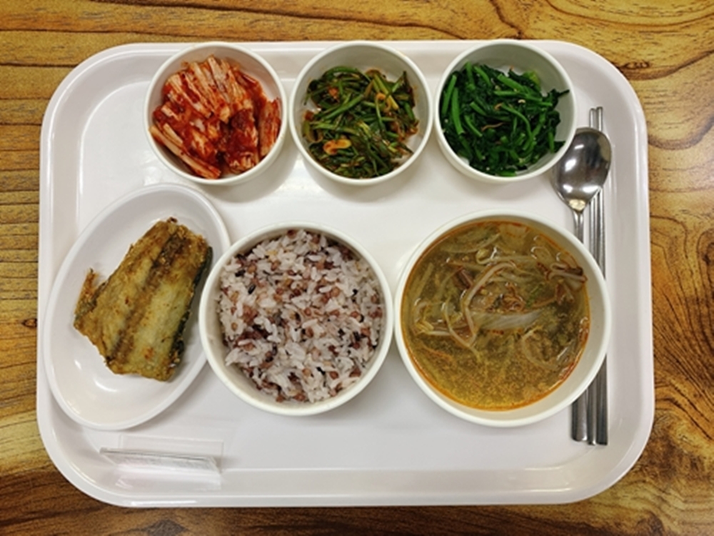 금일 중식 식단은 백미밥(죽/잡곡밥) / 육개장 / 삼치구이 / 미나리우렁초무침 / 열무된장무침 / 김치 였습니다~!