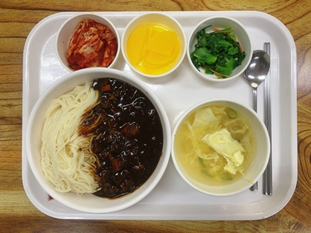 금일 중식 식단은 백미밥(죽/잡곡밥) / 북어채계란국 / 짜장면 / 청경채나물무침 / 단무지 / 김치 였습니다~!