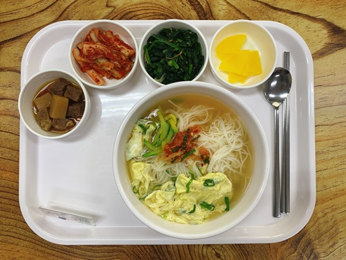 금일 중식 식단은 백미밥(죽/잡곡밥) / 잔치국수 / 소고기장조림 / 시금치나물무침 / 단무지 / 김치 였습니다~!