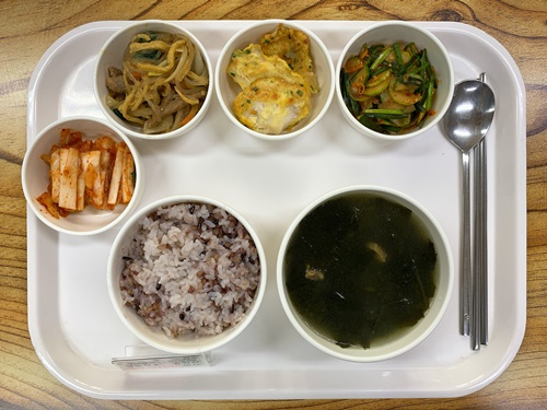 금일 중식 식단은 백미밥(죽/잡곡밥) / 소고기미역국 / 동태전 / 오이부추겉절이 / 한식잡채 / 김치 였습니다~!