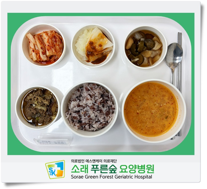 ▷ 11월 5일 중식 : 백미밥(죽/잡곡밥) / 비지찌개 / 소불고기 / 양배추쌈&쌈장 / 모듬장아찌 / 김치 ◁