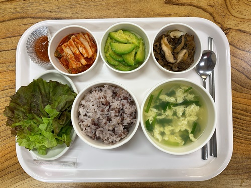 금일 중식 식단은 백미밥(죽/잡곡밥) / 계란부추탕 / 우불고기 / 상추쌈&쌈장 / 애호박볶음 / 김치 였습니다~!