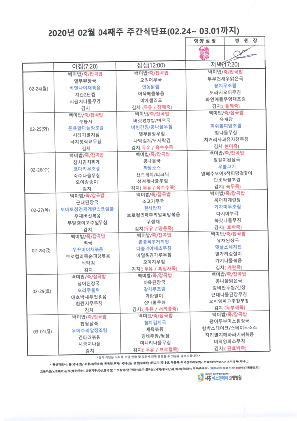 HOME > 병원소식 > 영양식단표