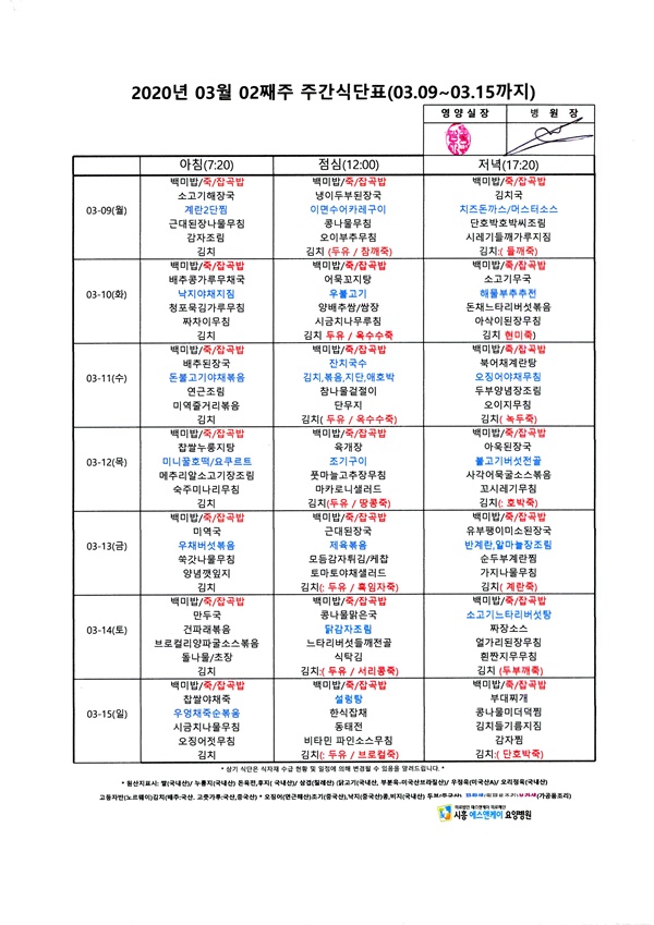 2020년 3월 2째주 주간식단표
