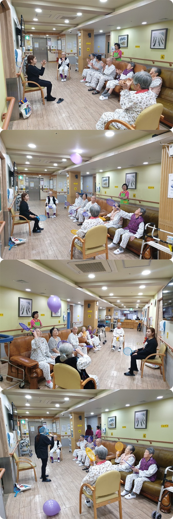시흥에스앤케이요양병원에서 매주 수요일은 행복테라피 튼튼 건강체조가 있는 날입니다.