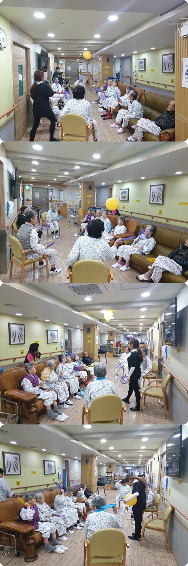 시흥에스앤케이요양병원에서 매주 수요일은 행복테라피 튼튼 건강체조가 있는 날입니다.