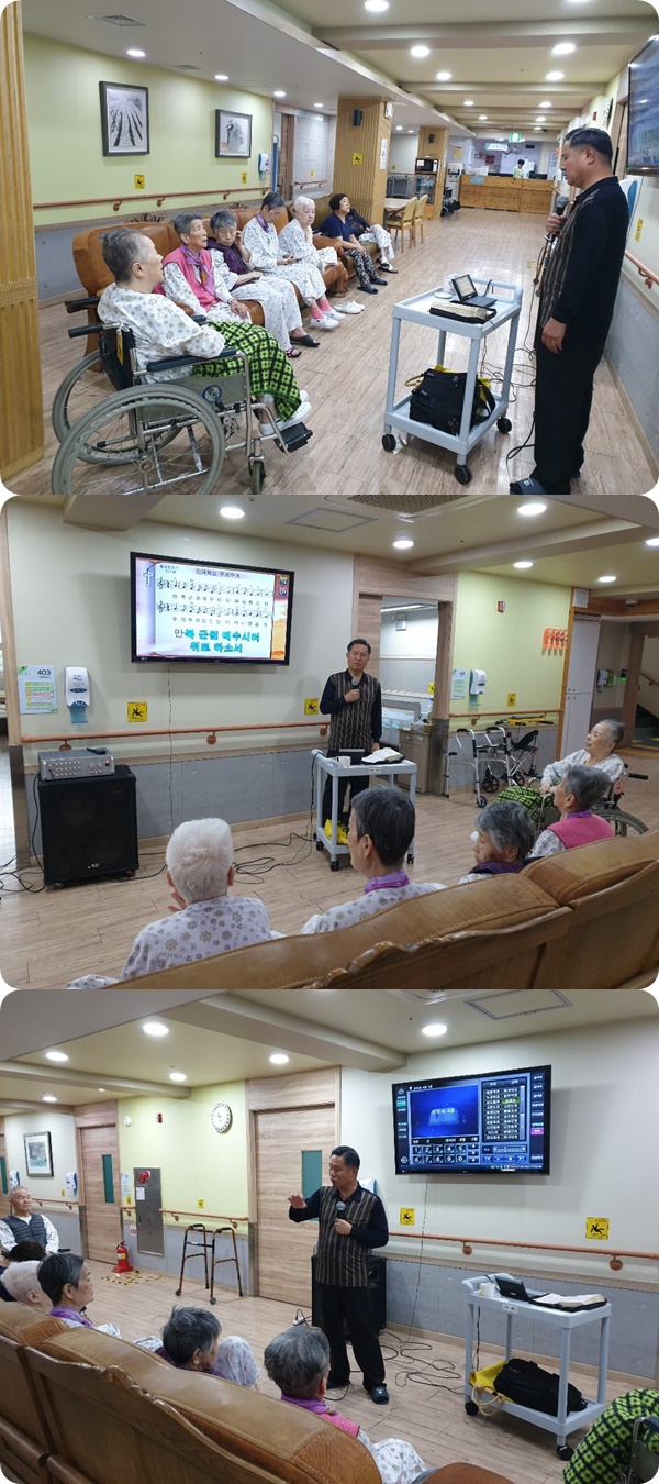 시흥 에스앤케이 요양병원에서는 주 1회 종교 활동 예배를 드리고 있습니다. 9월 첫째주 금요일 오전 4층 병동에서는 예배시간에 주 예수의 덕 외 2곡, 로마서 3장 말씀의 시간을 가졌으며, 서로 악수를 하고 인사를 주고받으며 소통의 예배시간이 되었습니다.