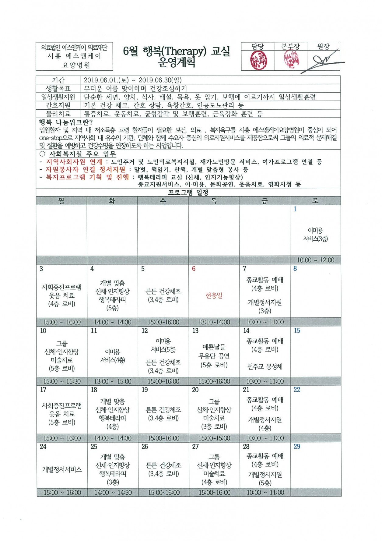 6월 행복테라피 시간표